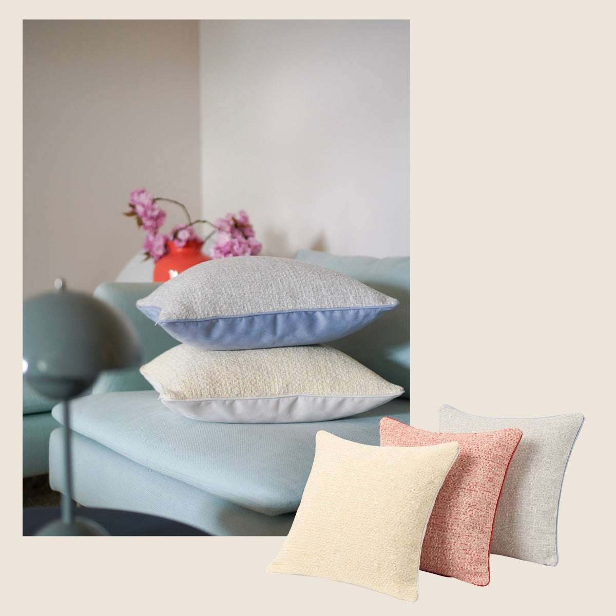 Zuckersüße Farben, edler Tweed-Stoff und handverlesenes Design – entdecke Strawberry Dream, Cotton Sky & Butter Bliss. Jedes Kissen (50x50 cm) ist ein kleines Sommerstatement für dein Zuhause: weich, hochwertig und liebevoll gefertigt.